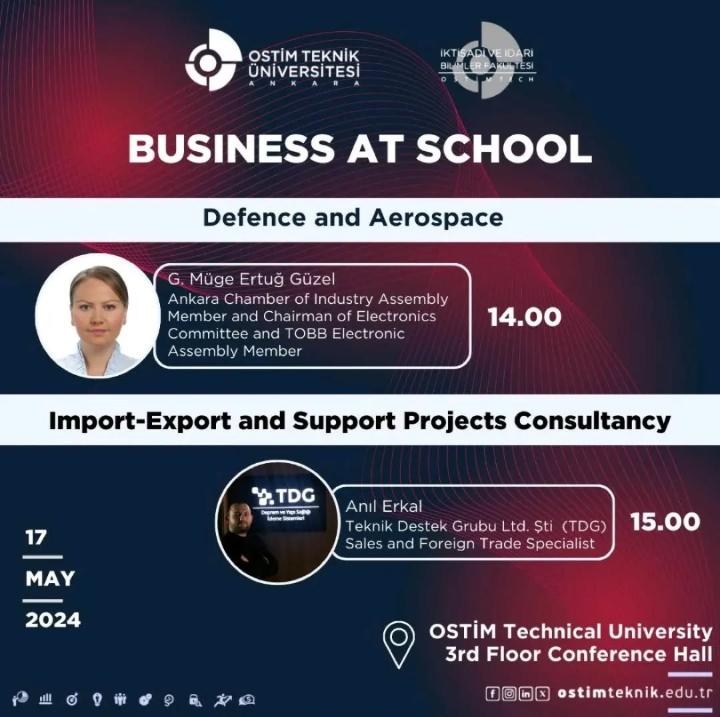 Fakültemiz İş Yeri Eğitimi dersi kapsamında gerçekleştirilen “İş’te Okul, Okul’da İş” Seminerleri on üçüncü hafta İngilizce ilk oturumu; Sayın G. Müge Ertuğ Güzel’in katılımı ile, ikinci oturum; Sayın Anıl Erkal’ın katılımı ile gerçekleştirilecek.