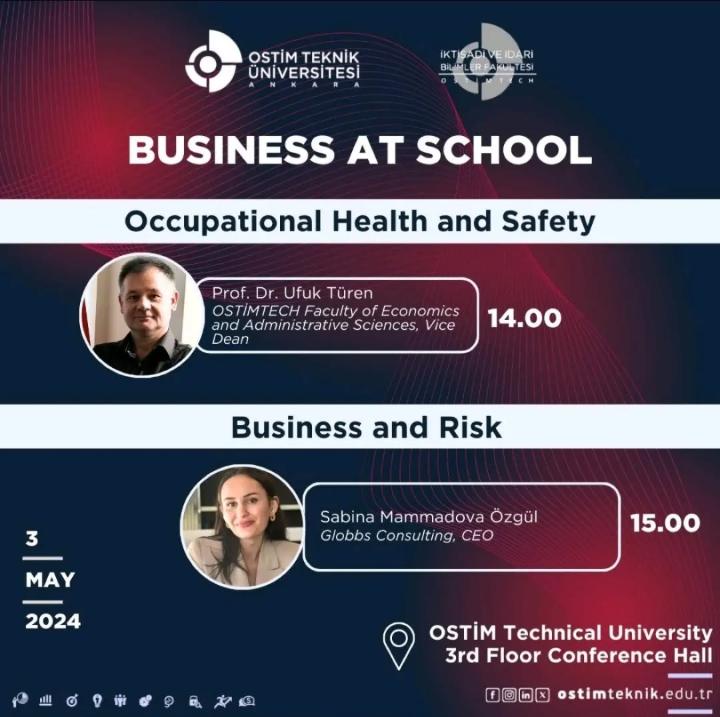 Fakültemiz İş Yeri Eğitimi dersi kapsamında düzenlenen “İş’te Okul, Okul’da İş” Seminerleri on birinci hafta İngilizce ilk oturum; Sayın Prof. Dr. Ufuk Türen’in katılımı ile, ikinci oturum ise Sayın Sabina Mammadova Özgül’ün katılımı ile gerçekleştirilecektir.