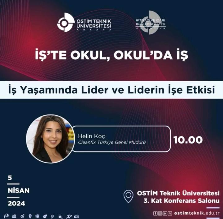 Fakültemiz İş Yeri Eğitimi dersi kapsamında gerçekleştirilen “İş’te Okul, Okul’da İş Seminerleri” sekizinci hafta Türkçe oturumu; Sayın Helin Koç’un katılımı ile gerçekleştirilecektir.