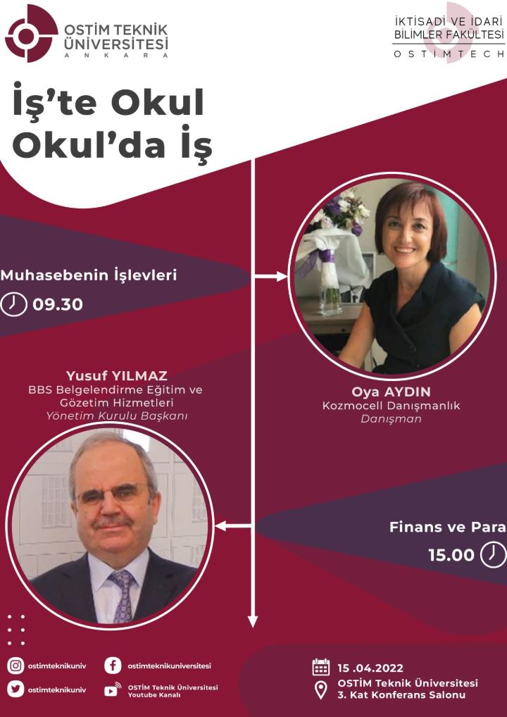 Fakültemiz İş Yeri Eğitimi dersi kapsamında gerçekleştirilen “İş’te Okul, Okul’da İş Seminerleri” Türkçe ilk oturumu; Sayın Oya Aydın’ın katılımı ile, ikinci oturum; Sayın Yusuf Yılmaz’ın katılımı ile gerçekleştirilecektir.