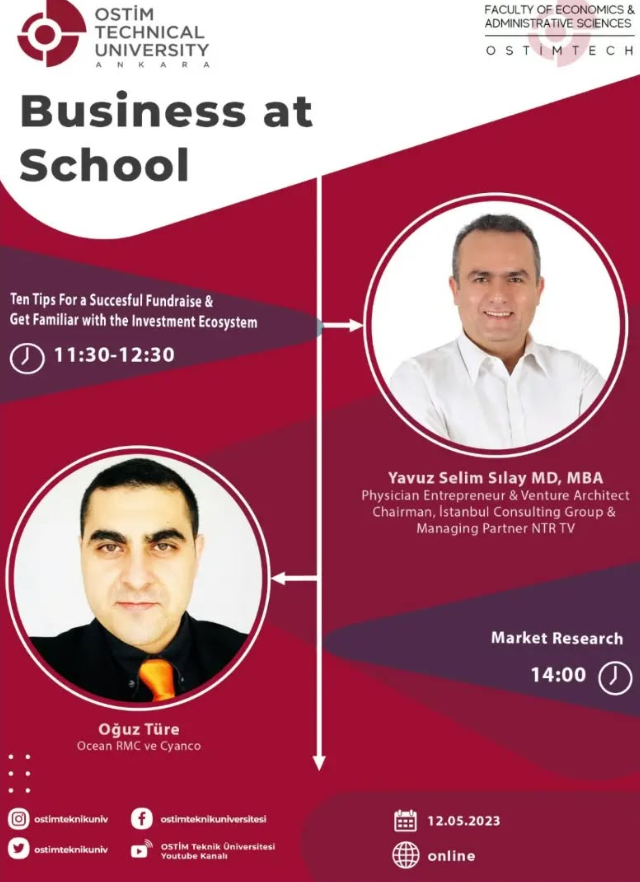 Fakültemiz İş Yeri Eğitimi Seminerleri kapsamında düzenlenen sekizinci hafta İngilizce ilk oturum Yavuz Selim Sılay'ın konuşmacı olarak katılımıyla, ikinci oturum ise Oğuz Türe'nin konuşmacı olarak katılımıyla gerçekleştirildi.