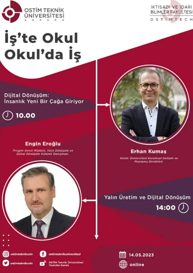 Fakültemiz İş Yeri Eğitimi Seminerleri kapsamında düzenlenen altıncı hafta Türkçe ilk oturum Erhan Kumaş'ın konuşmacı olarak katılımıyla, ikinci oturum ise Engin Eroğlu'nun konuşmacı olarak katılımıyla gerçekleştirildi